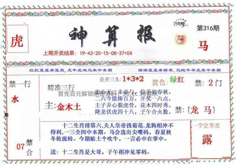 318期:绝杀三肖【龙猴马】开鼠06准